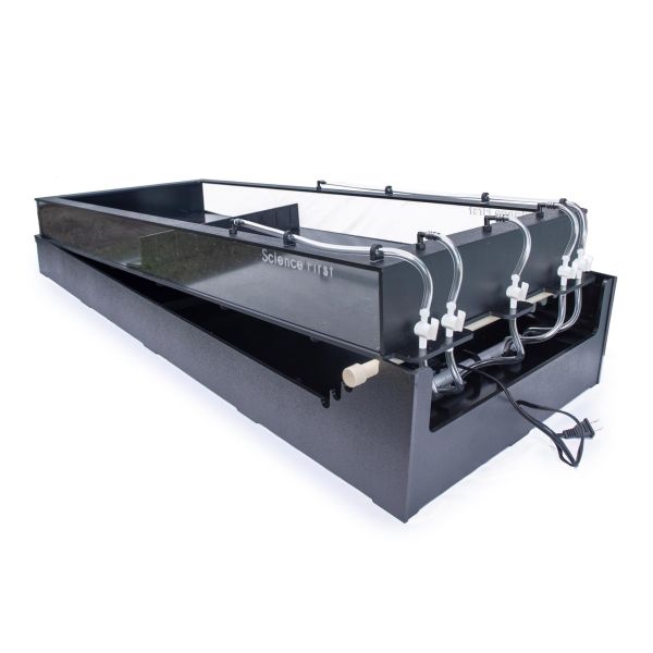 Stream tables are an essential part of the earth sciences class for the study of erosion, sediment deposition, and the behavior of rivers and lakes. Use them to unfold these processes inside the classroom at an accelarated rate - easier than observing a real river over the course of decades. Until now, however, there's been little choice in features or affordability in a stream table. That's why we're proud to introduce the most advanced system to be found anywhere, at a price you won't believe! With our integrated design, set-up is a breeze - simply add water, turn on the pump and teach! A generous 48 x 20" in size, our rugged ABS device features five water jets, not the usual one. One water jet yields one piddly stream, while many jets form tributaries that form rivers, just like the landscape around you. The reservior contains a sediment trap to prevent particulates from cloging the pump. The integrated prop holds the table at several angles and the clear acrylic sides allow views of sediment layers. A removable dam creates a lake to illustrate how sediments form deltas. Fully watertight. This item ships oversize. Oversize fees will be added to your shipping.