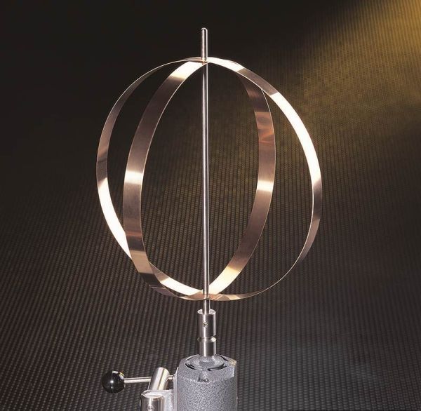 Designed to be rotated at low speed only with the shaft vertical, the Centrifugal Hoop is unrestrained at top and elongates horizontally to model the flattening of the earth at the poles. The hoops are spring bronze, and the shaft is stainless steel.